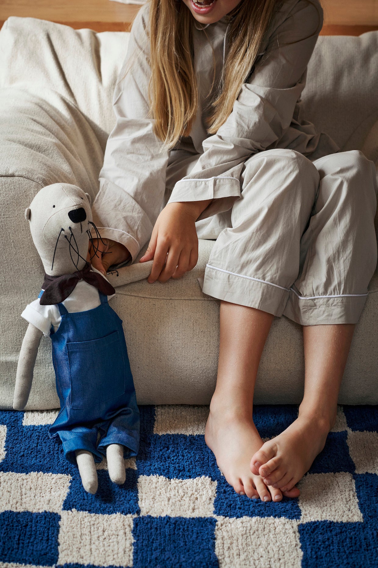 Het Mara wasbare vloerkleed is een eigentijdse kijk op een klassiek vloerkleed met een gedurfd ruitpatroon en decoratieve franjes. Met de hand getuft van GOTS-gecertificeerd, organisch katoen, is het resultaat een gedurfd maar evenwichtig ontwerp dat elke kamer een speels element van contrast zal geven.